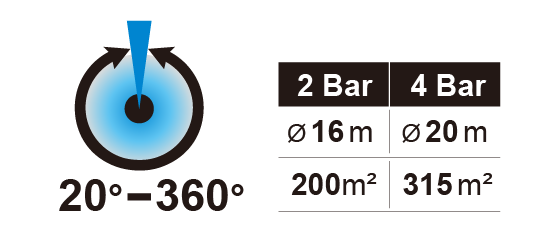 • Diffuser pin and baffle arm for adjusting coverage distance.